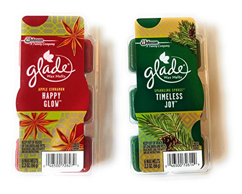 Glade Wax Melts Apple Cinnamon Happy Glow and Sparkling Spruce Timeless Joy (2 pack, 6 melts each)