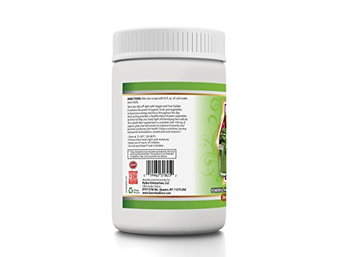 ALL in One ORGANIC INGREDIENTS FORMULA: The superfood supplement contains natural, organic ingredients. The veggie and fruit golden powder is a delicious blend of vegetables and packed with assorted fruits. Each tub contains a mix of organic apples, broccoli, carrots, tomatoes, kale, green cabbage, spinach, spirulina algae, barley grass, blueberries, strawberries and raspberries.