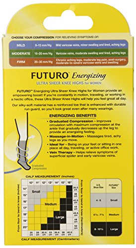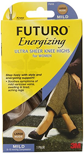 Futuro Ultra Sheer Knee Highs for Women, Nude, Large, Mild 8-15 mm/Hg , (Pack of 2)