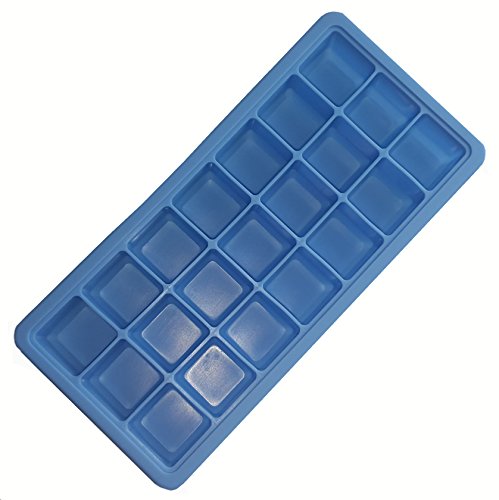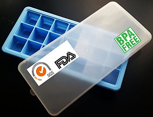 SILICONE ICE CUBE TRAY with LID Easy Pop Release Flexible Plastic Storage Container, 21 Cubes, BPA Free, BLUE, Best for Whiskey Cocktails, Great Gift for Kitchen