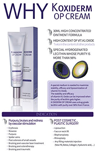 OP VITAMIN K Cream lightens skin discolorations and minimizes the appearance of spider veins and bruising, red, irritated skin.