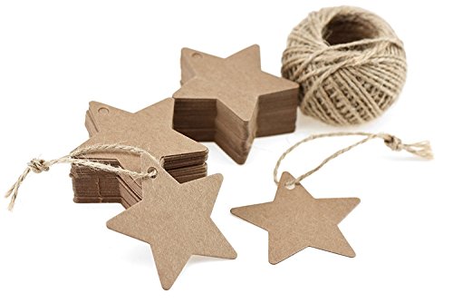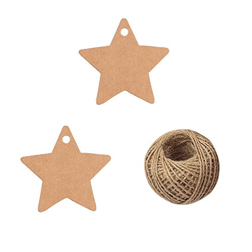 100 Pcs Christmas Gift Tags with String Kraft Paper Blank Vintage Hang Tags Star Shape Gift Tag Wedding Hang Tags With 100 Feet Jute Twine Crafts Price Tags