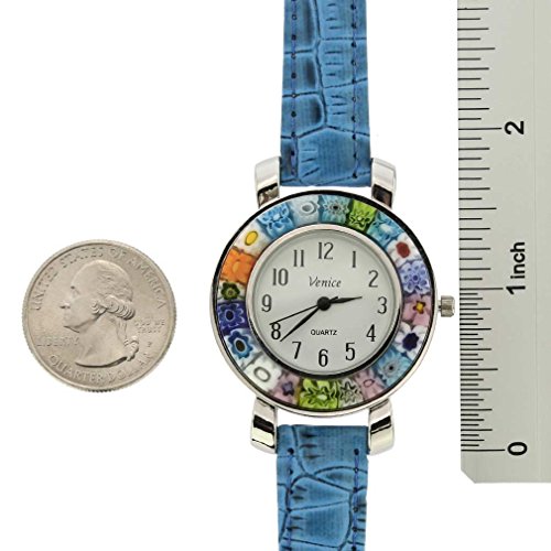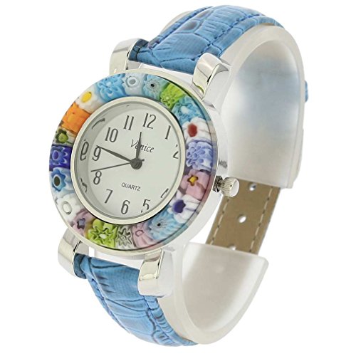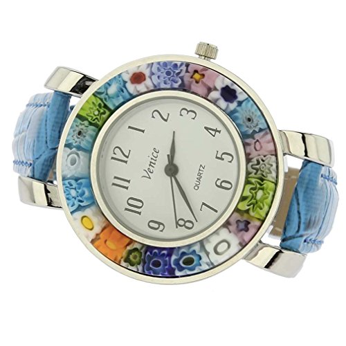 GlassOfVenice Serena Murano Millefiori Watch With Leather Band - Light Blue