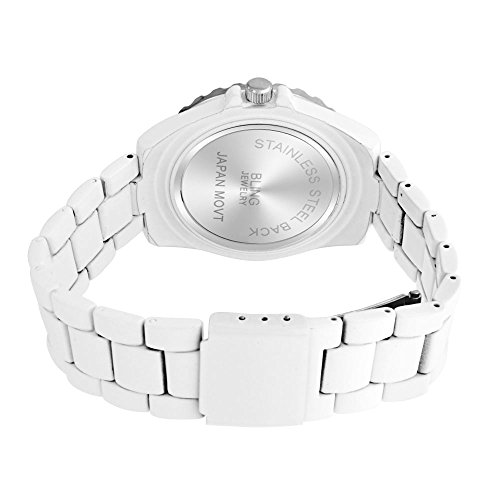 Bling Jewelry White Enamel Crystal Dial Unisex Fashion Stainless Steel Back Watch