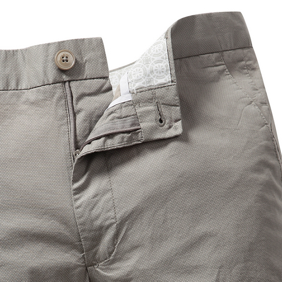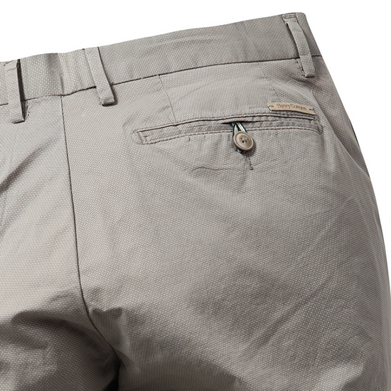 - 톤온톤 올오버 패턴이 멋스러운 남성 팬츠.- 부드러운 터치감의 면혼방 소재로 편안함.- 허릿단 1버튼 여밈 디자인으로 단정함.- 노턱을 적용한 Italian Fit 라인으로 깔끔함.- 양 사이드,백 포켓으로 소지품 수납이 용이함.- 백 포켓 상단 로고 불박 가죽 패치 디테일로 브랜드의 감각을 연출함.- 썸머 시즌의 세련된 맨즈 룩을 완성시켜줌.