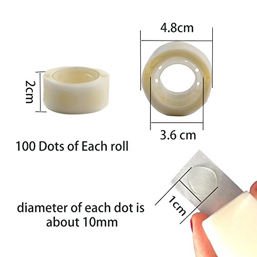 The diameter of each dot is about 10mm. Package includes 4 rolls while per roll has 100 glue points. You will get 400 glue dots at the price listed.Balloon is not included.