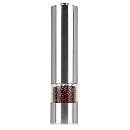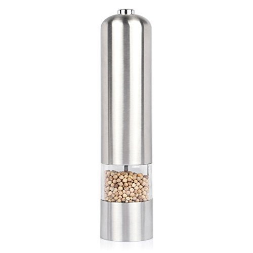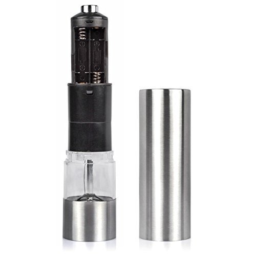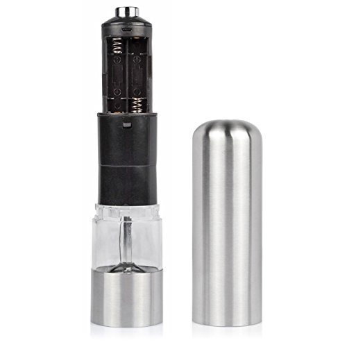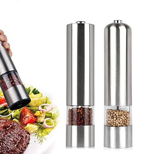 Lagute Stainless Steel Multi-function Automatic Electric Grinder Mill Set of 2 for Pepper and Salt, Battery-powered, One-touch Operation, Adjust from Fine to Coarse, Suitable for Restaurant Hotel Kitchen and Home