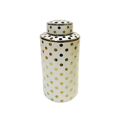 Sagebrook Home Decorative Ceramic Covered Jar, 8.25x8.25x16, White/Gold