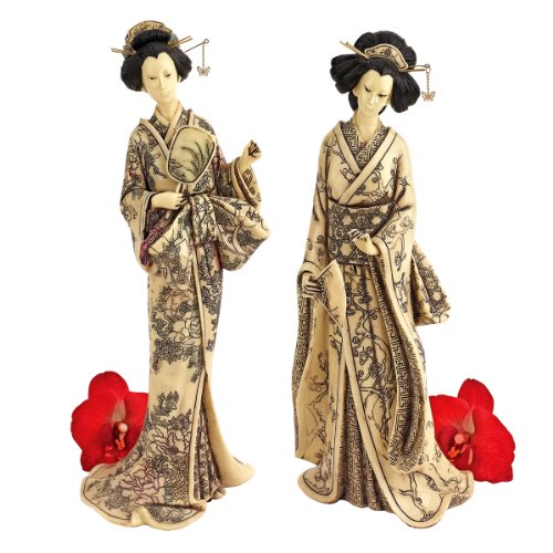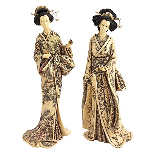 Design Toscano 2-Piece Japanese Okimono Geisha Statue Set in Faux Ivory