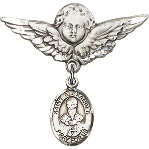 -. Title : Sterling Silver Baby Badge with St. Alexander Sauli Charm and Angel w/Wings Badge Pin 1 1/8 X 1 1/8 inches
