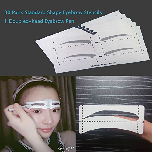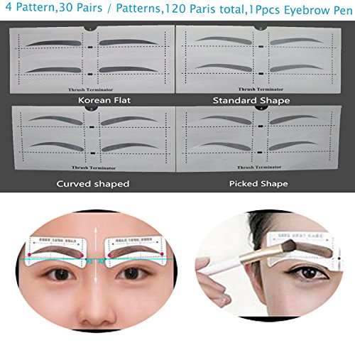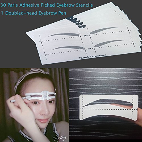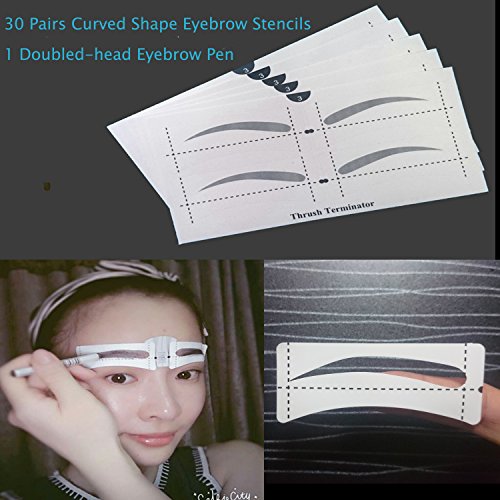 Multifunction Makeup Stencil contouring stencil Package :30 pairs adhesive eyebrow stencils tools with 1 Pc Dark Brown Double-head Eyebrow Pen and 2 Eyebrow Link Sticks.