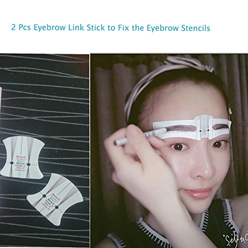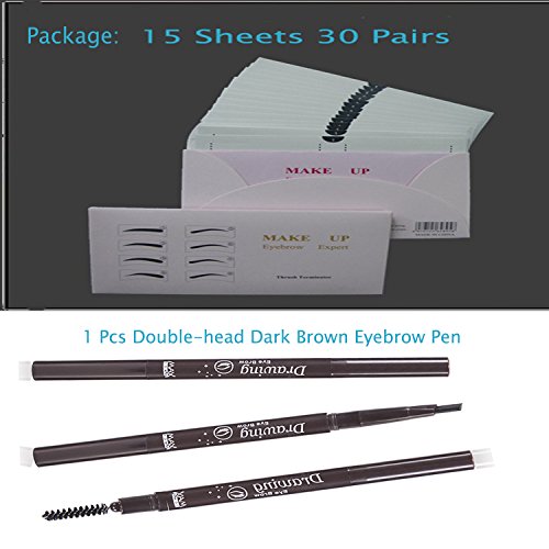 Package :30 pairs adhesive eyebrow stencils tools with 1 Pc Dark Brown Double-head Eyebrow Pen and 2 Eyebrow Link Sticks