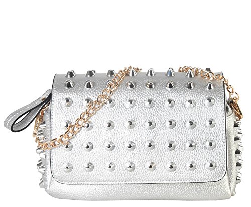 -. Brand : Diophy -. Color : Black -. Department : womens -. Feature : This handbag comes in 4 different colors: Black, Bronze, Gold, and Silver. / High Quality Metal Color PU Leather Studded Cross Body Flap Handbag Accented with Chain Strap Womens Purse. / High Quality Fabric Lined Interior with Multiple Interior Pockets. 1 Main Compartment with 1 Zippered Pocket and 2 Open Pockets Inside. / Approximate Size info: Length 9" x Width 4" x Height 6" Material: PU Faux Leather. Top Zipper & Flap Closure. / Color showing in other color is to show the different variation angles of the handbag. The actual bag ship, will be the one your purchesed. -. Model : SY-6018 Parent -. PackageQuantity : 1 -. ProductGroup : Shoes -. ProductTypeName : HANDBAG -. Size : Small -. Title : Diophy Metal Color PU Leather Studded Cross Body Flap Handbag Accented with Chain Strap Womens Purse SY-6018