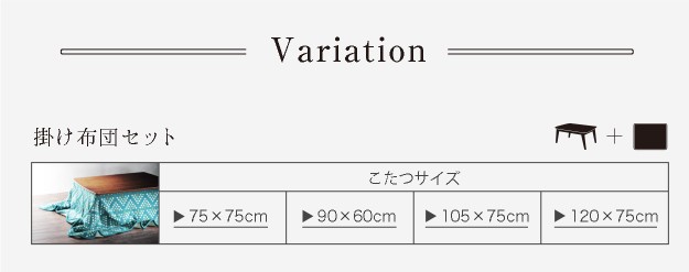 ※メーカー直送のため代金引換はお受けできません。※沖縄・一部離島は別途送料がかかります。お見積もりいたしますのでお問い合わせ下さい。【セット構成】こたつ本体x1掛布団x1敷布団x1【カラーバリエーション】■こたつ本体ウォールナット(ブラウン)・オーク(ナチュラル)■掛布団フラワー・ツリー■掛布団ベージュ・チャコールグレー・グリーン【仕様】■こたつ本体天板:天然木化粧繊維板(ウォールナット/オーク)幕板・脚部:天然木(ラバーウッド)石英管ヒーター(400W、中間スイッチ式)◎一部組立■掛布団表地:アクリル100%裏地:ポリエステル100%■敷布団表地:ポリエステル100%裏地:ポリエステル100%撥水・防汚・滑り止め加工【サイズ】■こたつ本体幅105x奥行75x高さ39.5cm重量:約18kg天板サイズ:幅105x奥行75cm・厚み30mm・約10kg■掛布団サイズ:210x190cm・中綿:約255g■敷布団サイズ:180x150cm・中綿:約810g株式会社ナカムラ(I-5700603)