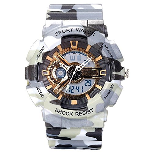 -. Title : LinTimes Young Adults Boys Girls Ourdoor Sport Military 50M Waterproof Watches Shock Resist For Hiking Grey+Gold