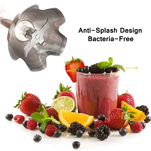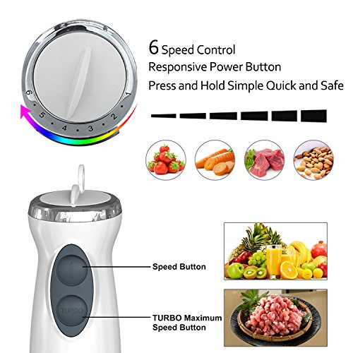 4. POWERFUL AND STABLE -Equiped with 400W 6 speeds + turbo durable stainless steel blades. You would really like it for quick blending drinks and soups. Its strong enough to lightly jerk when you power it up