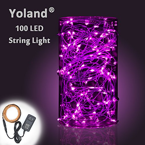Yoland LED Copper Wire Lights, 33Ft 100LEDs with 12V AC/DC Power Adapter String Light, Fairy Starry Light for Christmas, Holidays, Garden, Party, Patio Decor, Purple