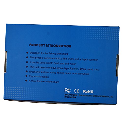 -. Feature : Portable Wired Fish Finder / Display: TN/ANTI-UV LCD.Display size: 40Wx39H / Operational Temperature: -4F to 158F(-20℃-70℃) / Small round transducer with 7.5m cable,45-degree beam angle / Depth Range Max/Min: 328Feet(100meters)/2Feet(0.7meters)