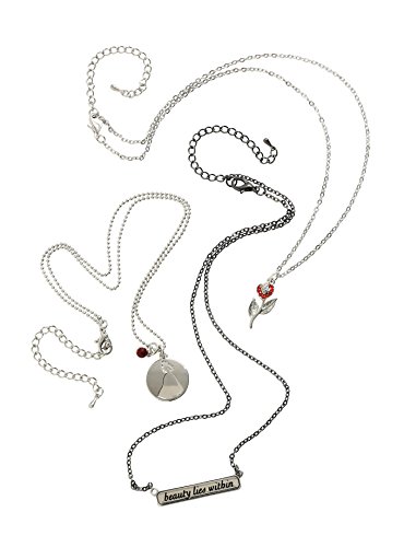 -. Binding : Jewelry -. Brand : Beauty and the Beast -. Color : Silver -. Department : womens -. EAN : 0723748421820 -. Feature : 2- 18" long with 3" extender 1- 16" long with 3" extender / Contains 3 necklaces / Official licensed Disney merchandise / silver tone metal -. Label : Beauty and the Beast -. Manufacturer : Beauty and the Beast -. Model : n/a -. ProductGroup : Jewelry -. ProductTypeName : FASHIONNECKLACEBRACELETANKLET -. Publisher : Beauty and the Beast -. Studio : Beauty and the Beast -. Title : Disney Beauty And The Beast Beauty Lies Within Necklace Set -. UPC : 723748421820