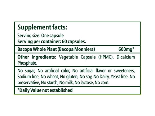 Bacopa 600 mg Vegeterian Capsules with Bacosides A&B-350mg for Memory Booster and Stress Reliever