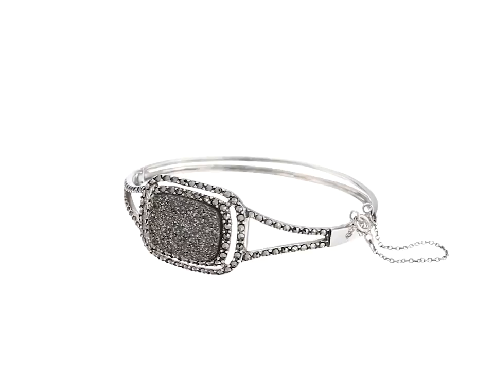 Sterling Silver Marcasite and Platinum Druzy Bangle Bracelet