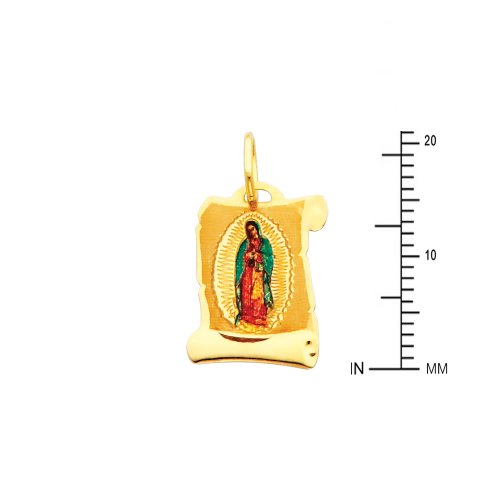 -. Binding : Jewelry -. Brand : The World Jewelry Center -. Department : womens -. Feature : Size : 15.5 mm x 12.5 mm / Guaranteed 14k Real Gold and "14k" Stamped / NO gold plated or filled / "NO Question Asked" 30-day Return Policy. / Promptly Packaged with Free Gift Box -. ProductGroup : Jewelry -. ProductTypeName : FASHIONNECKLACEBRACELETANKLET -. Title : 14k Yellow Gold Religious Our Lady of Guadalupe Enamel Picture Charm Pendant