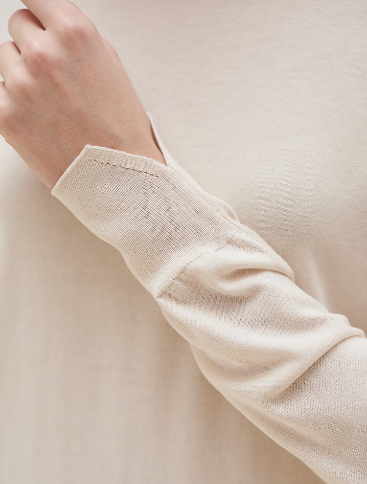 - 코튼과 실크 블렌딩 원단으로 부드럽고 고급스러운 소재감의 풀오버입니다.