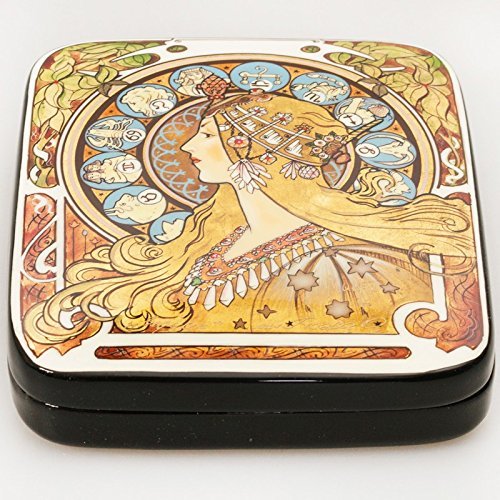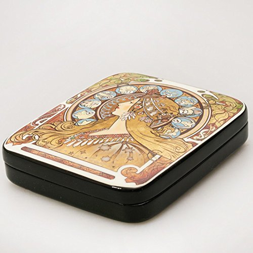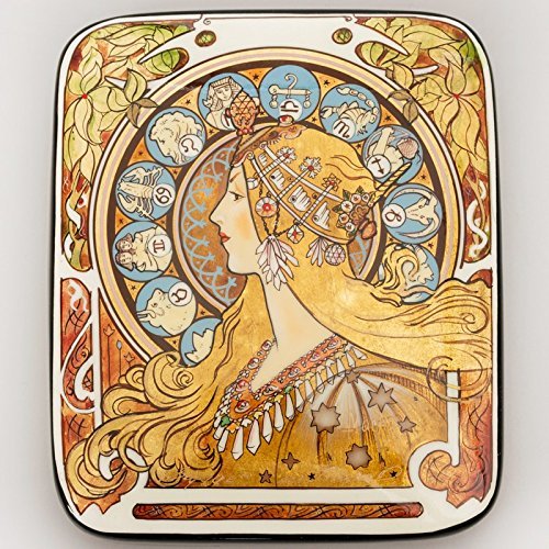 Beautiful Hand-painted Papier-mache Lacquer Box for Jewelry Zodiac Lacquer Box (A. Mucha) Great Gift for Women