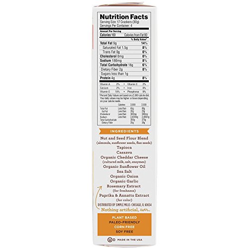 Simple Mills Naturally Gluten-Free Almond Flour Crackers, Farmhouse Cheddar, 3 Count