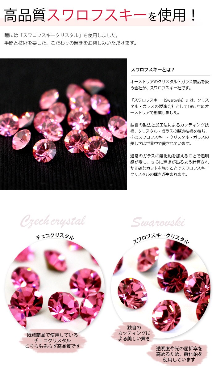 | 素 材 | 合金製 クリスタルガラス スワロフスキークリスタル(瞳のみ) 樹脂塗料 |
