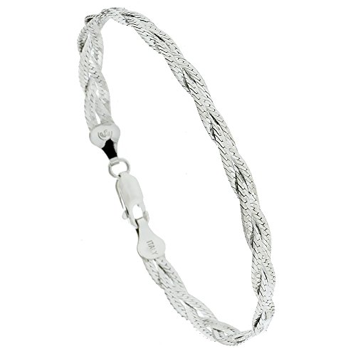 -. Title : Sterling Silver 3-Strand Braided Herringbone Bracelet, 3/16 inch