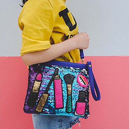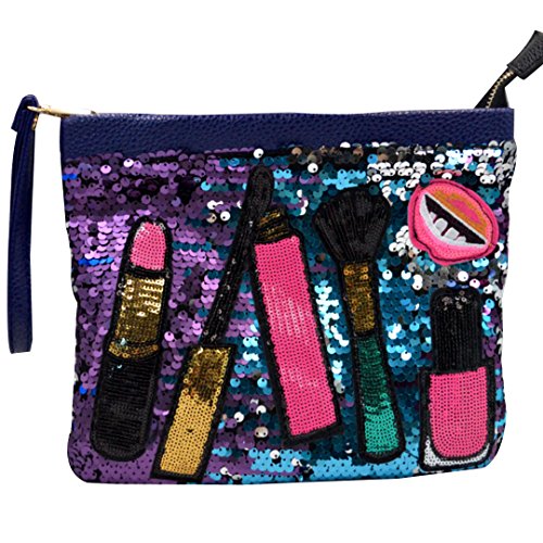 - Glaring sequin design, lipstick, brush, eyelash, mouth and nail polish patches decorated in the front of bag; enlightens your winter outfits with this playful and delighting trend