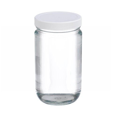 Wheaton W216907 Clear Glass 32oz Straight Sided Jar, with 89-400 White Polypropylene Poly-Vinyl Lined Screw Cap (Case of 12)