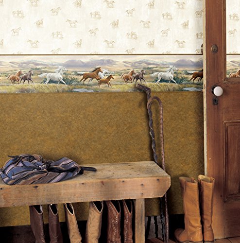 -. Title : Chesapeake HTM48482B Swift Sand Open Range Horses Portrait Wallpaper Border