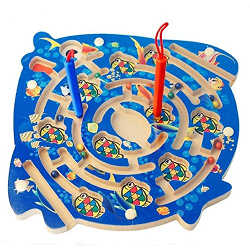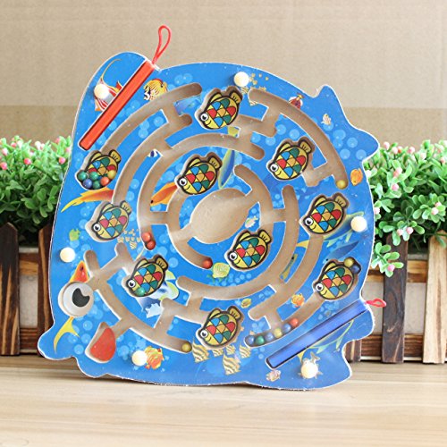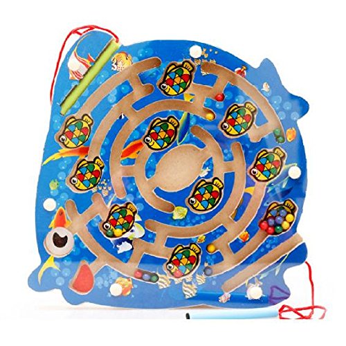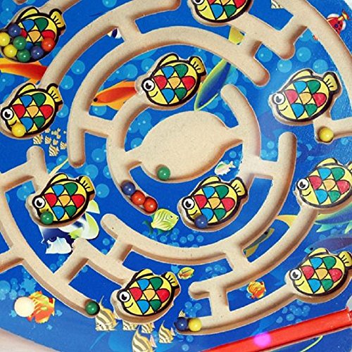 FQStech Wooden Circular Magnetic track pen Magnetic Beads Maze Hand-Held Maze with Stylus Inter...