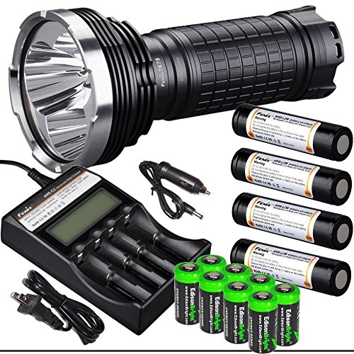 FENIX TK75 4000 Lumen 2015 Edition Quad CREE XM-L2 U2 LED Flashlight with Four Fenix ARB-L2M 18650 Batteries, EdisonBright 4 port home/car smart battery charger and eight EdisonBright CR123A lithium batteries bundle