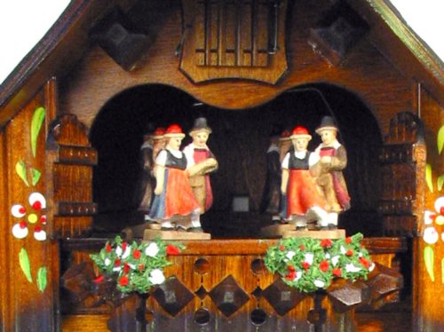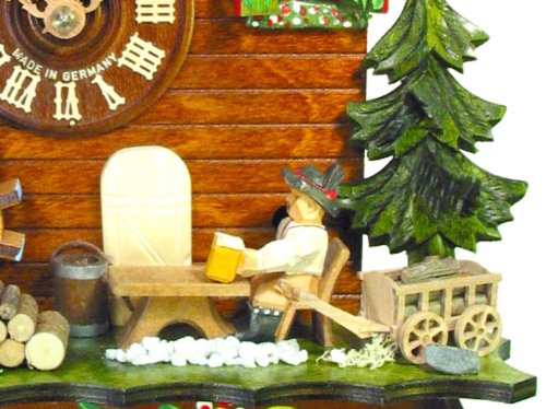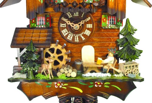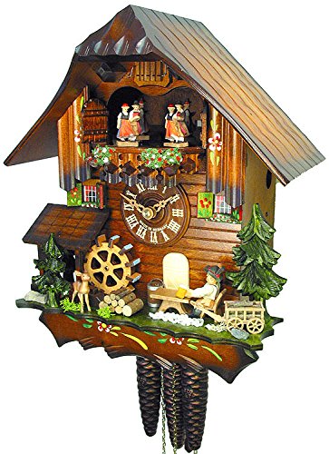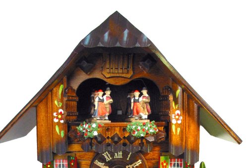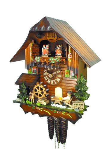 Studio : August Schwer Publisher : August Schwer Binding : Kitchen Product Description Colour: Walnut Height: 32 cm/13 inch Width: 26 cm/10 inch Depth: 22 cm/9 inch Wooden dial, wooden hands, wooden bird, and night shut off 2 years product warranty The cuckoo calls every half hour once and the number of the hours every full hour. This cuckoo clock has an exclusive life-like wooden handpainted cuckoo. With certificate of authenticity from the Black Forest Clock Association (VdS). It has a mechanical extreme long-life rack strike movement. It allows turning the hands left and right without endangering the mechanics of the movement. The 1 day running time movement need to be wind up every day, that means you pull on the chains until the weights are up. The music box is from the marketleader REUGE in switzerland. The size refers only to the clock, without pendulum and weights. 0