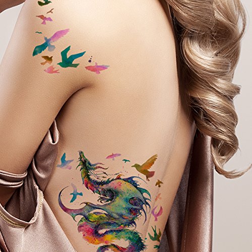 Supperb Temporary Tattoos - Gorgeous Colorful Dragon & birds