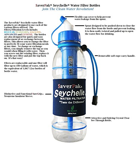 $averPak 2 Pack - Includes 2 Seychelle 20oz Extreme Water Filter Bottles (Blue)