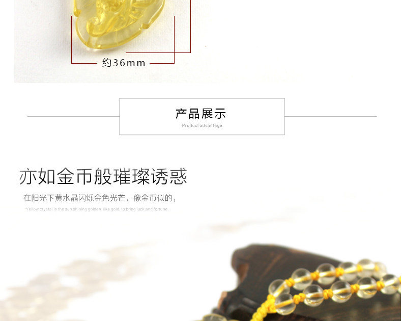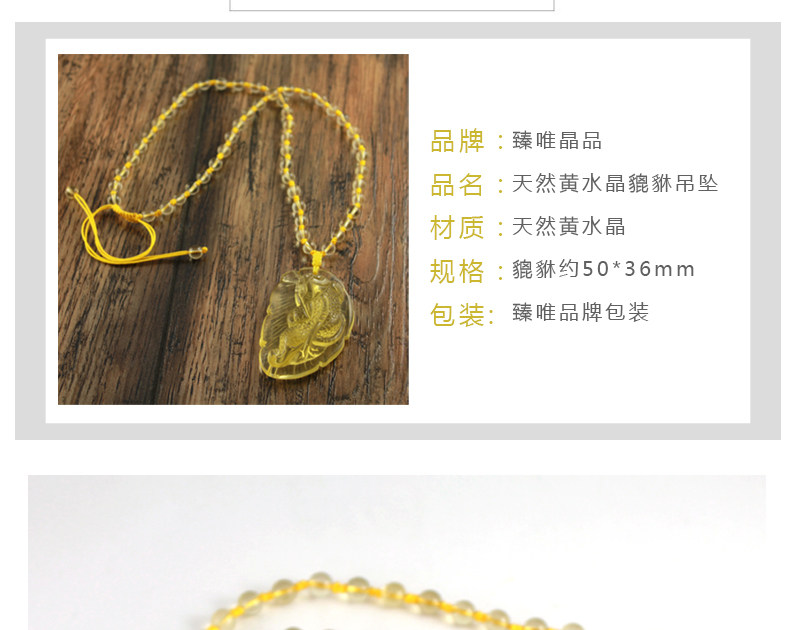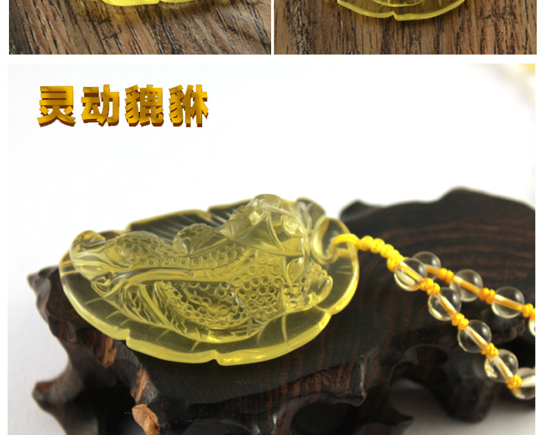 天然黄水晶貔貅吊坠男女款吊坠 招财饰品