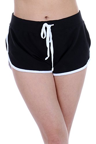 -. Feature : SUPER COMFORTABLE COTTON SHORTS: Made of high quality stretchy cotton fabric. Elastic waistband provides maximum comfort fit and waist drawstring makes it even more secure fit. / CASUAL EXERCISE SHORTS with a rear pocket and contrast outline. Perfect for the gym, running, fitness, exercise, volleyball, outdoor activity, beach and home. / WAIST: Small (26-28 inches), Medium (29-31 inches), Large (32-34 inches). HIP: Small (36-38 inches), Medium (39-41 inches), Large (42-44 inches). Model is 5'8", waist 26", hip 36", wearing size Small. / BUY ONE SIZE SMALLER: These shorts run a bit larger compared to US standard sizing. Please refer to the size guide above. / Made of 57% Cotton / 38% Polyester / 5% Spandex. Hand wash, Cold water, Do not bleach, Dry flat.