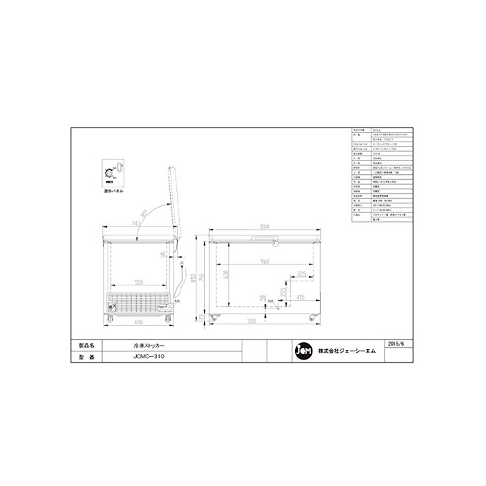 원본상품명: 冷凍ストッカ【JCMC-310】 JCMC-310