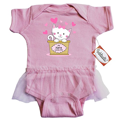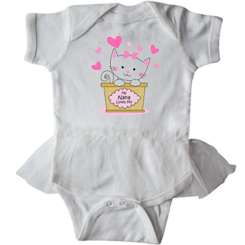 Product Description Infant Tutu Bodysuit with an adorable kitty cat in a basket wearing a bow and pink hearts says MY NANA LOVES ME. Perfect gift from Grandma for kids who love kittens on Valentine's Day or any day. 0