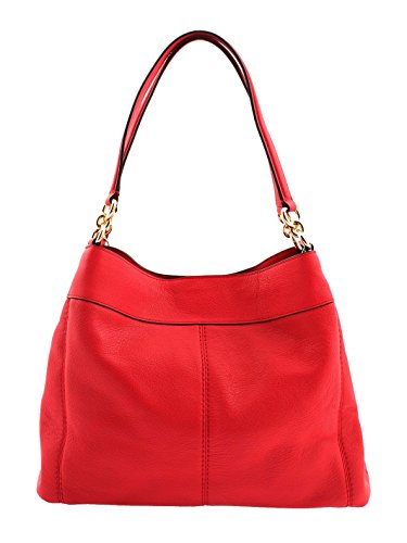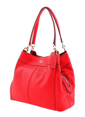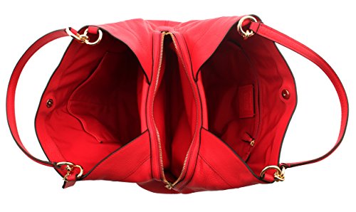 -. Feature : Pebble Leather / Inside zip, cell phone and multifunction pockets / Zip closure, fabric lining / Magnetic snap compartments Handles 9 1/2" drop / 13" (L) x 10 3/4" (H) x 4 3/4" (W)