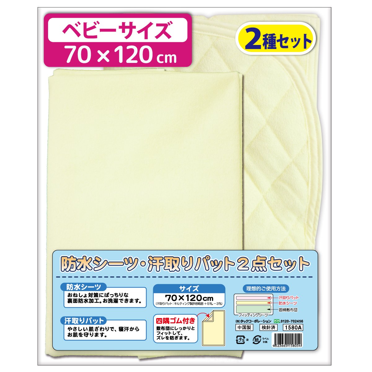 100% cotton pile bedwetting sheets (waterproof sheets) + sweat putt 2-piece set (70 ~ 120cm)