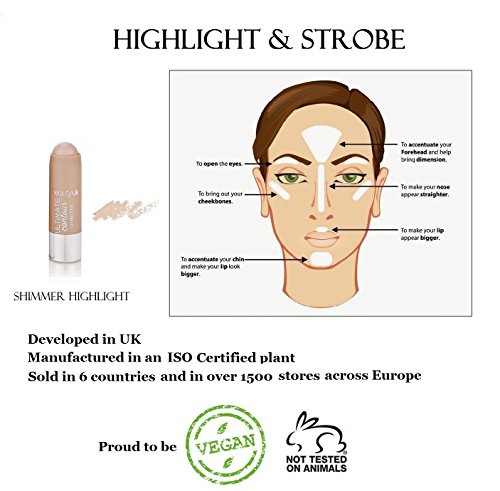 -. Feature : Our specially designed smooth, lightweight and creamy formula glides effortlessly onto your skin, perfect for blending to perfect your desired look / A convenient twist up stick so you can carry in your handbag for an instant top up! / Perfect tool to achieve a strobe-like luminosity to amplify & reflect light / Luxury quality, unique ingredients and pigments, simplicity in packaging, transparency in manufacturing so you can enjoy an amazing product at an affordable P.R.Ice. Completely developed in the UK and manufactured under strict regulations / Proud to be Against Animal Testing / Vegan-Friendly