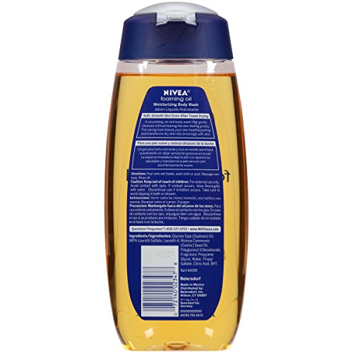NIVEA Foaming Oil Body Wash is a nourishing, oil-rich body wash that gently cleanses without leaving skin feeling greasy. When mixed with water, the caring oil body wash becomes a gentle cleansing foam that leaves skin healthy-looking and transforms dry skin into amazingly soft skin.Feature