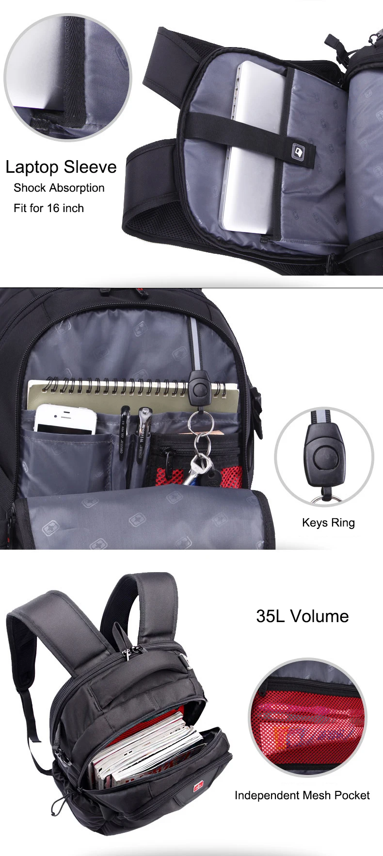 Interior:Interior Key Chain Holder,Interior Compartment,Computer Interlayer,Interior Zipper Pocket,Interior Slot Pocket,Cell Phone Pocket