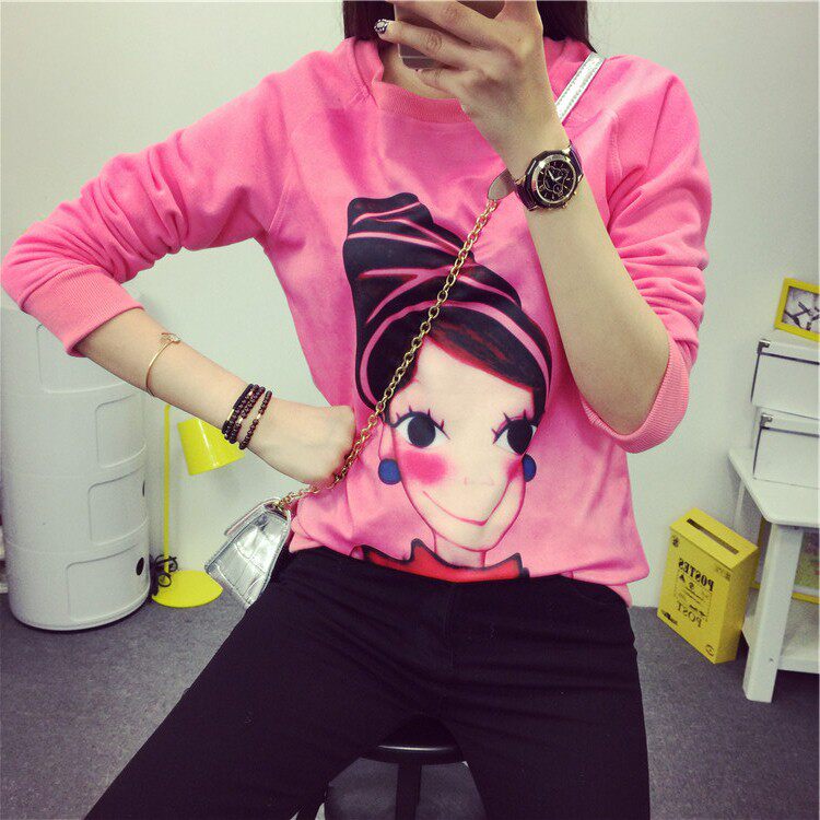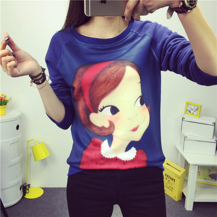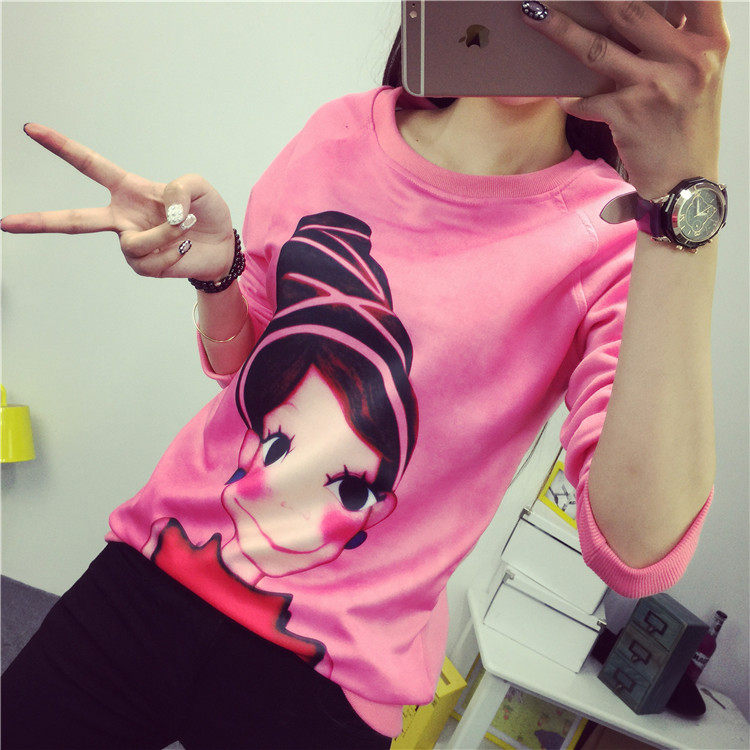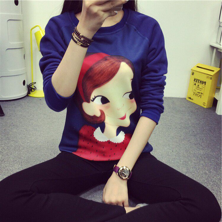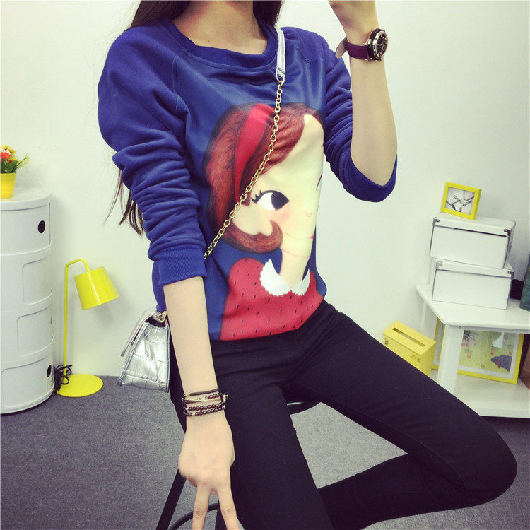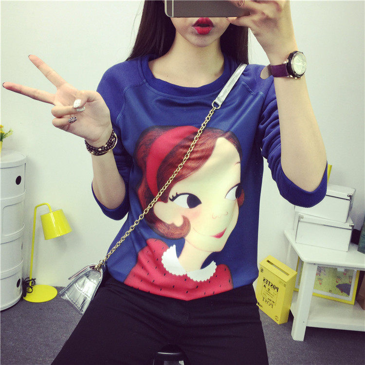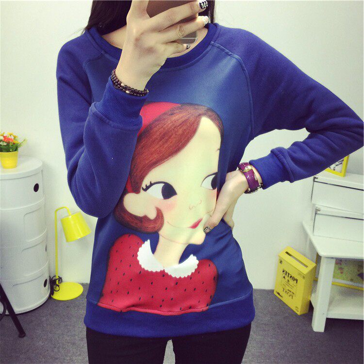 6131#秋冬外套可爱卡通印花加绒卫衣女长袖套头宽松显瘦学生大码潮