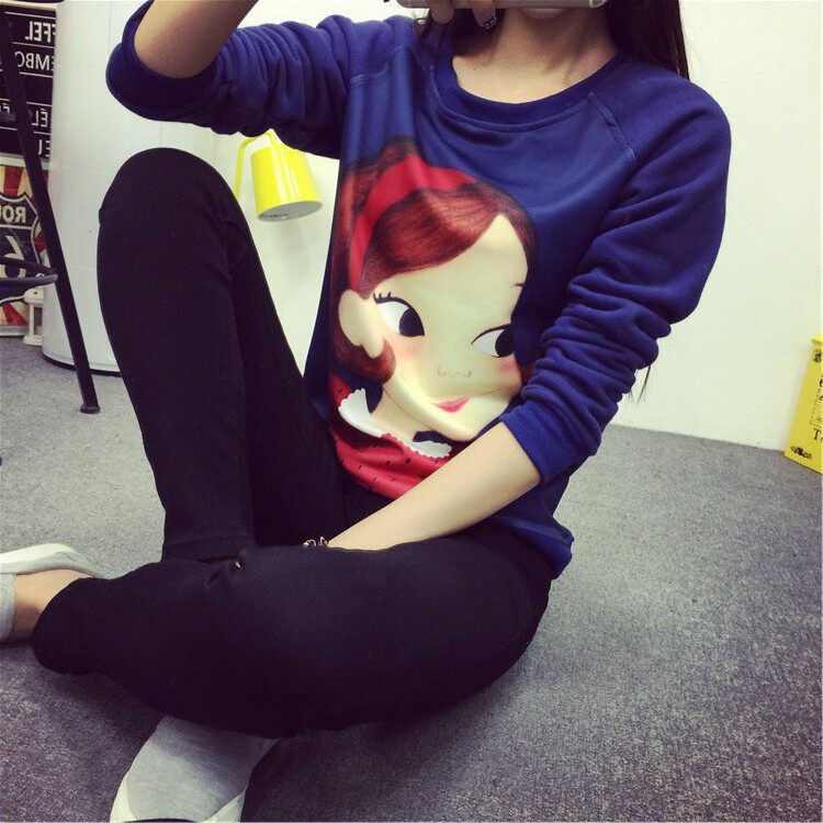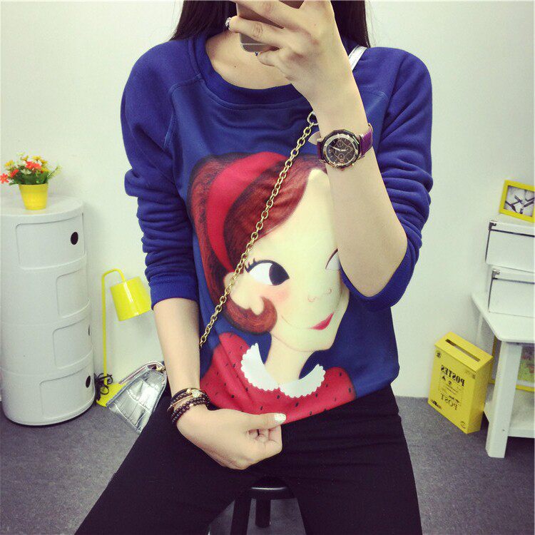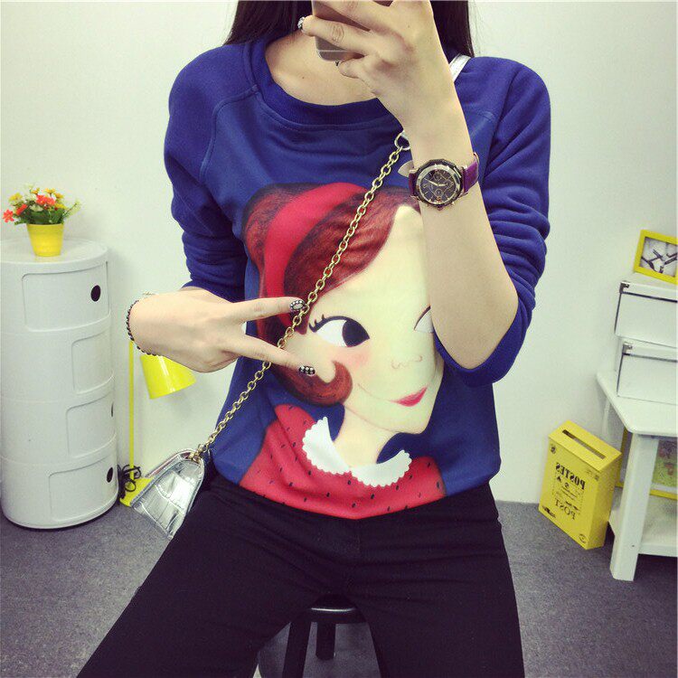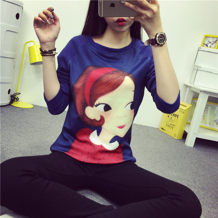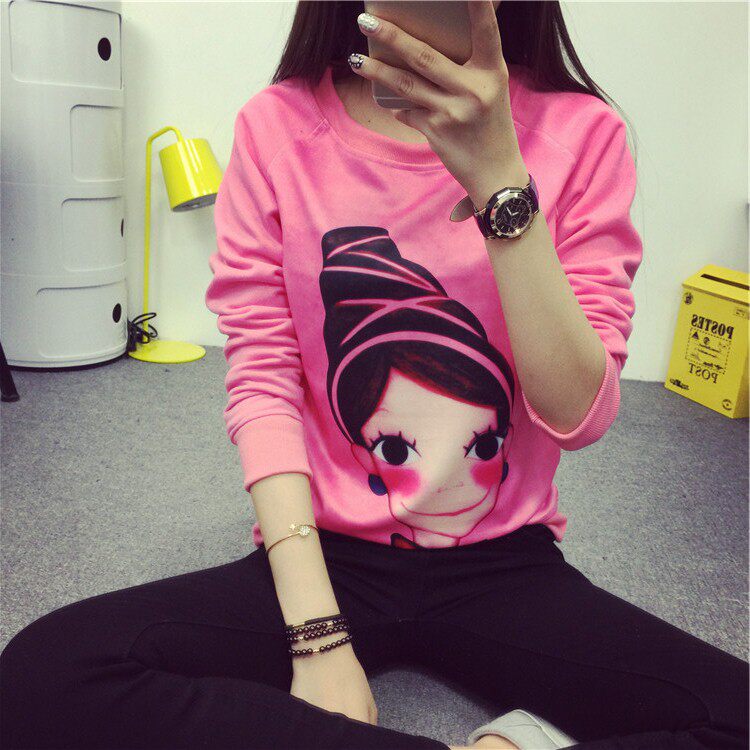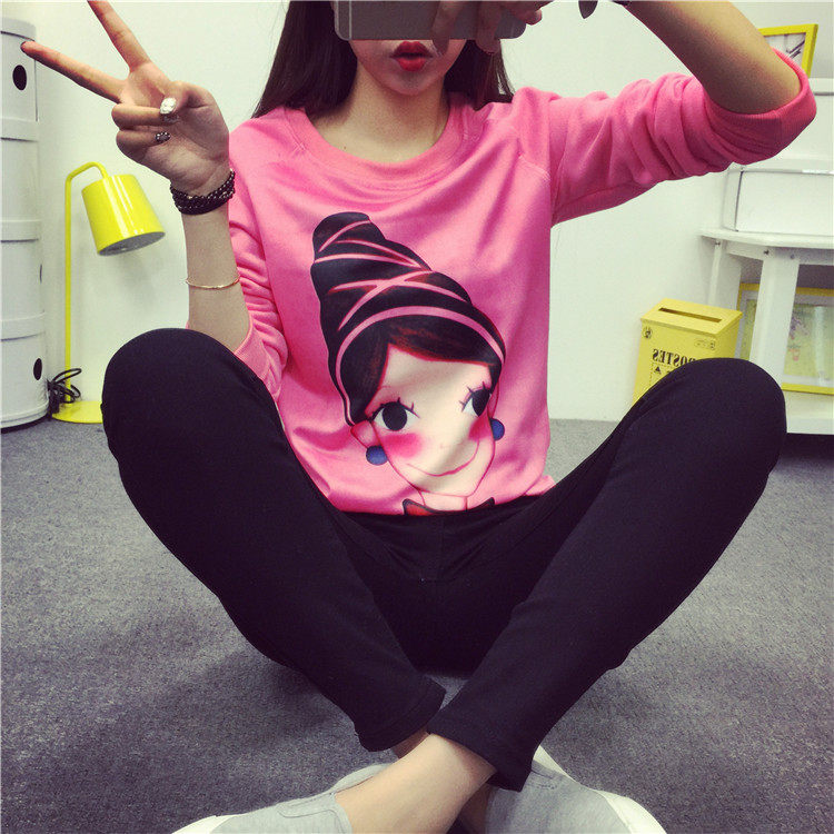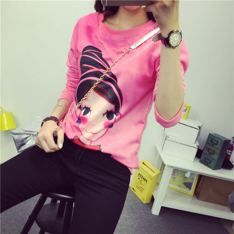 6131#秋冬外套可爱卡通印花加绒卫衣女长袖套头宽松显瘦学生大码潮